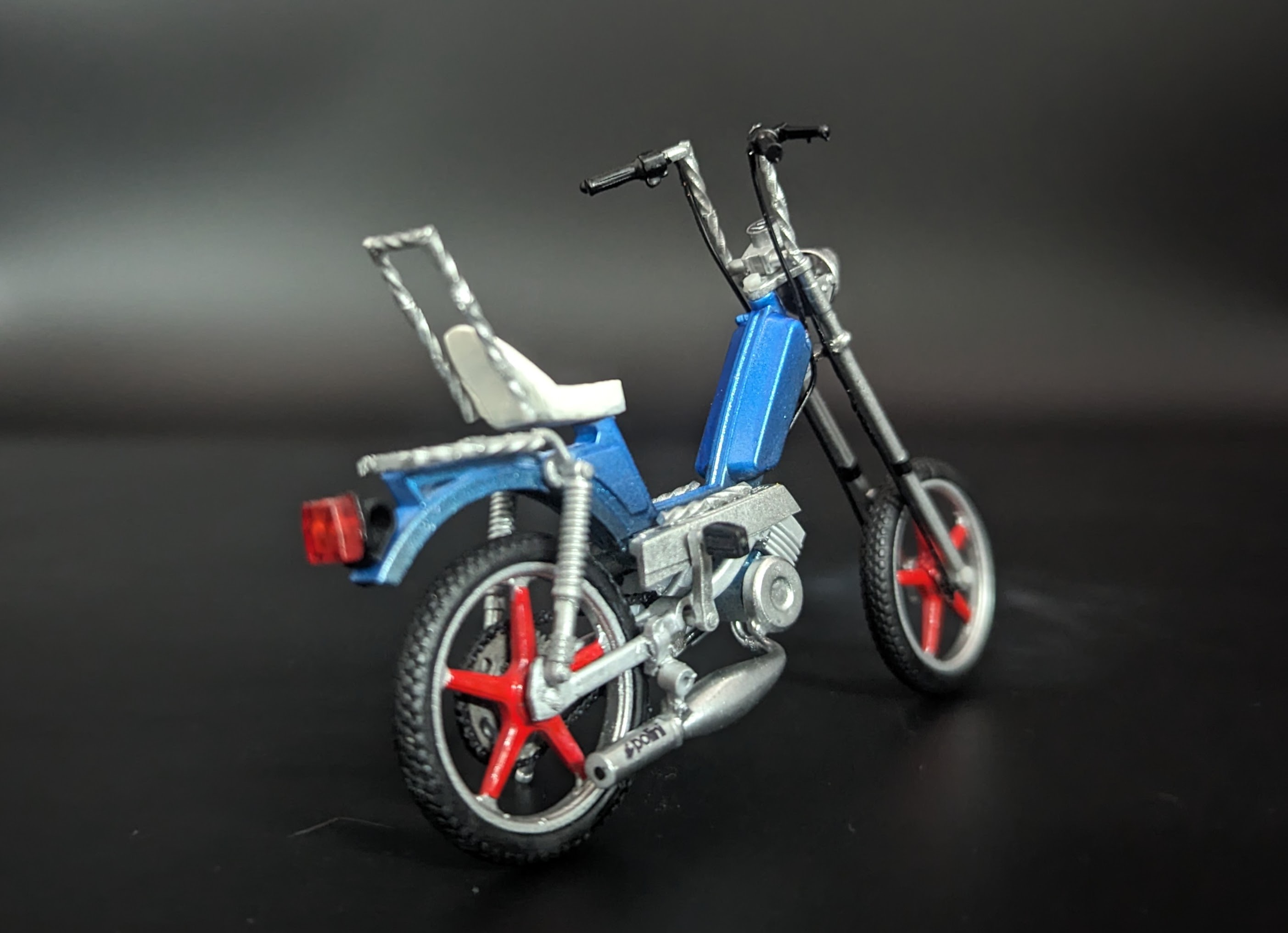 Cette mob Peugeot 103 Sp miniature a reçu quelques modifications :