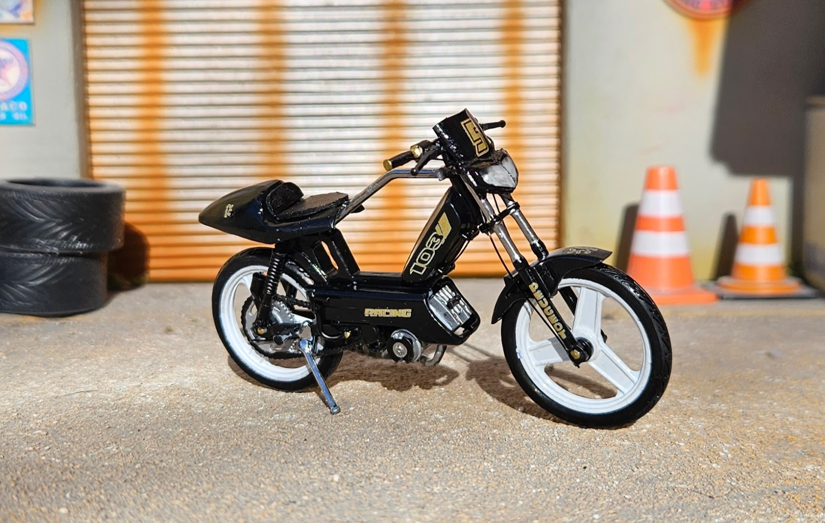 Cette mob Peugeot 103 Rcx miniature a reçu quelques modifications :
