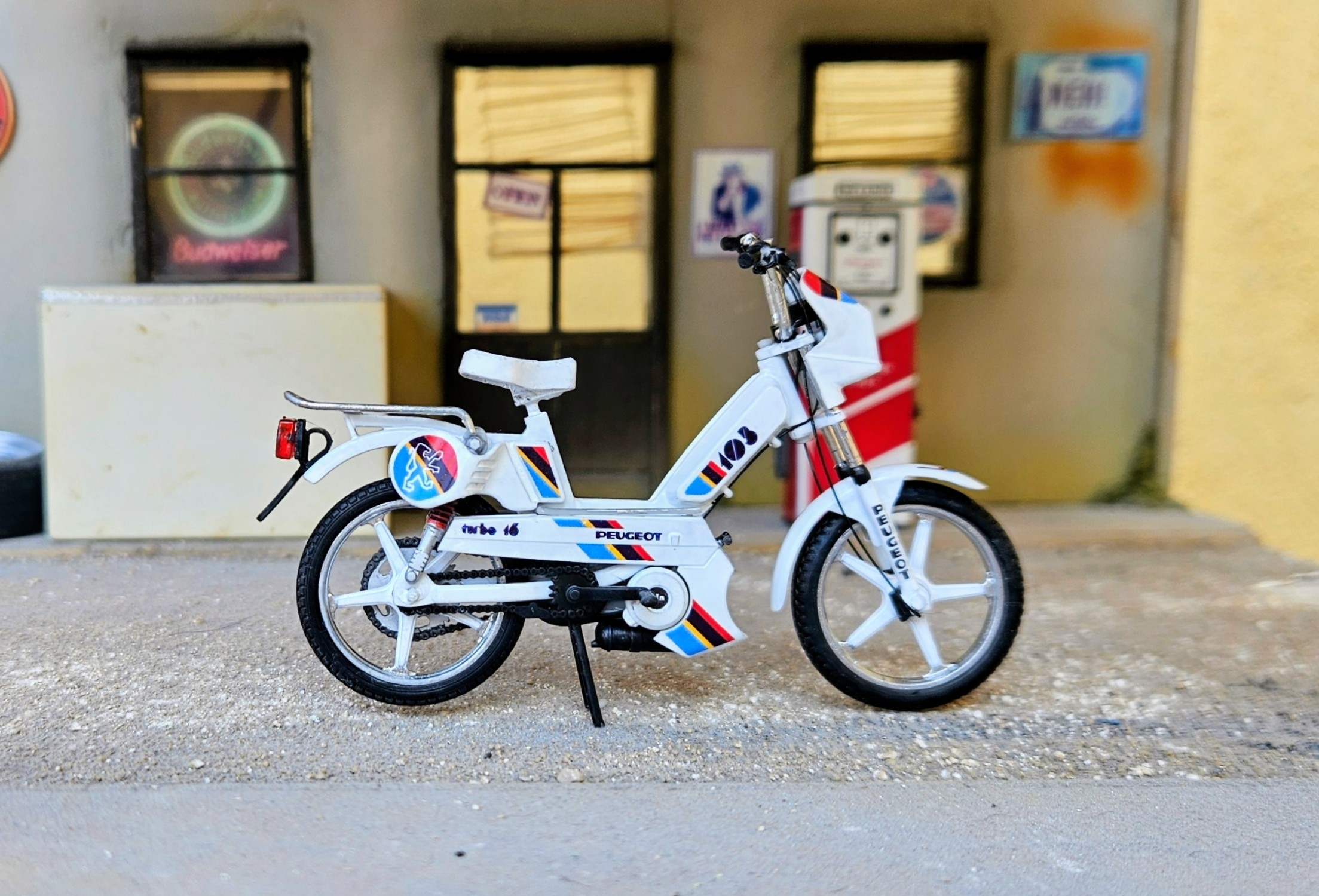 Cette mob Peugeot 103 Turbo 16 miniature a reçu quelques modifications :